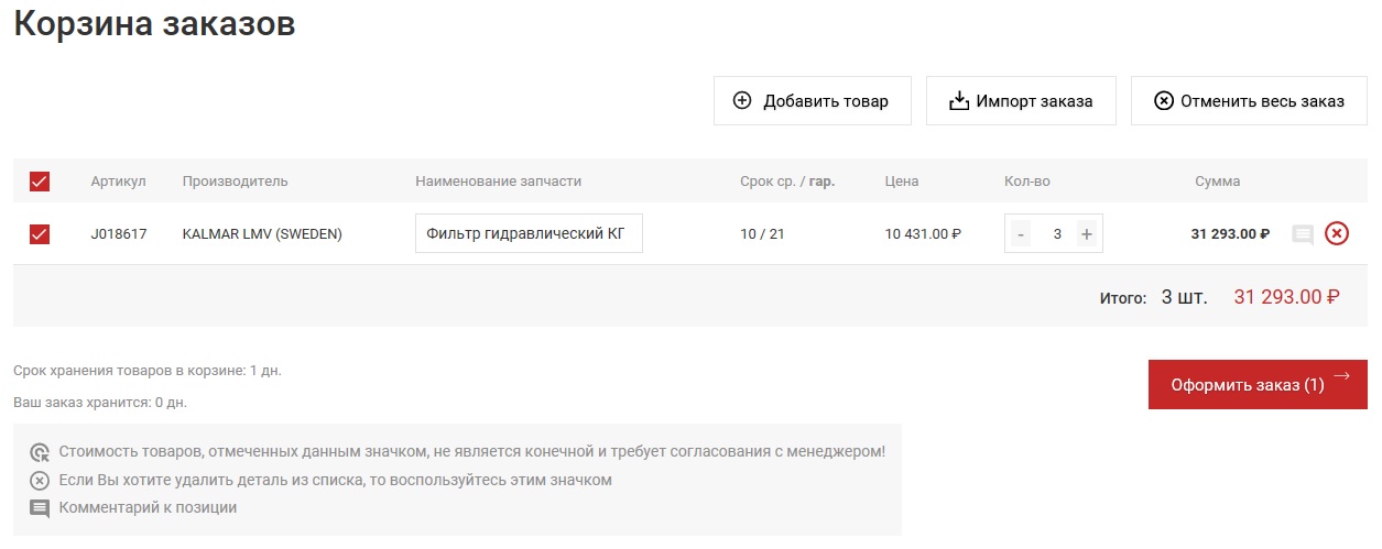 - Укажите необходимое количество товара в колонке Заказ и положите его в Корзину (Рис. 1).