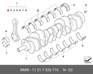 11 21 7 526 716 BMW Вкладыши коренные к-т намотор0508штD70ммBMWN62B44/N62B48E60,E63,E65,E66,E53