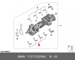 11 21 7 532 960 BMW Вкладыши коренные к-т на мотор EMB0106025 8шт D70мм 11217525813 025 BMW N62B44/N
