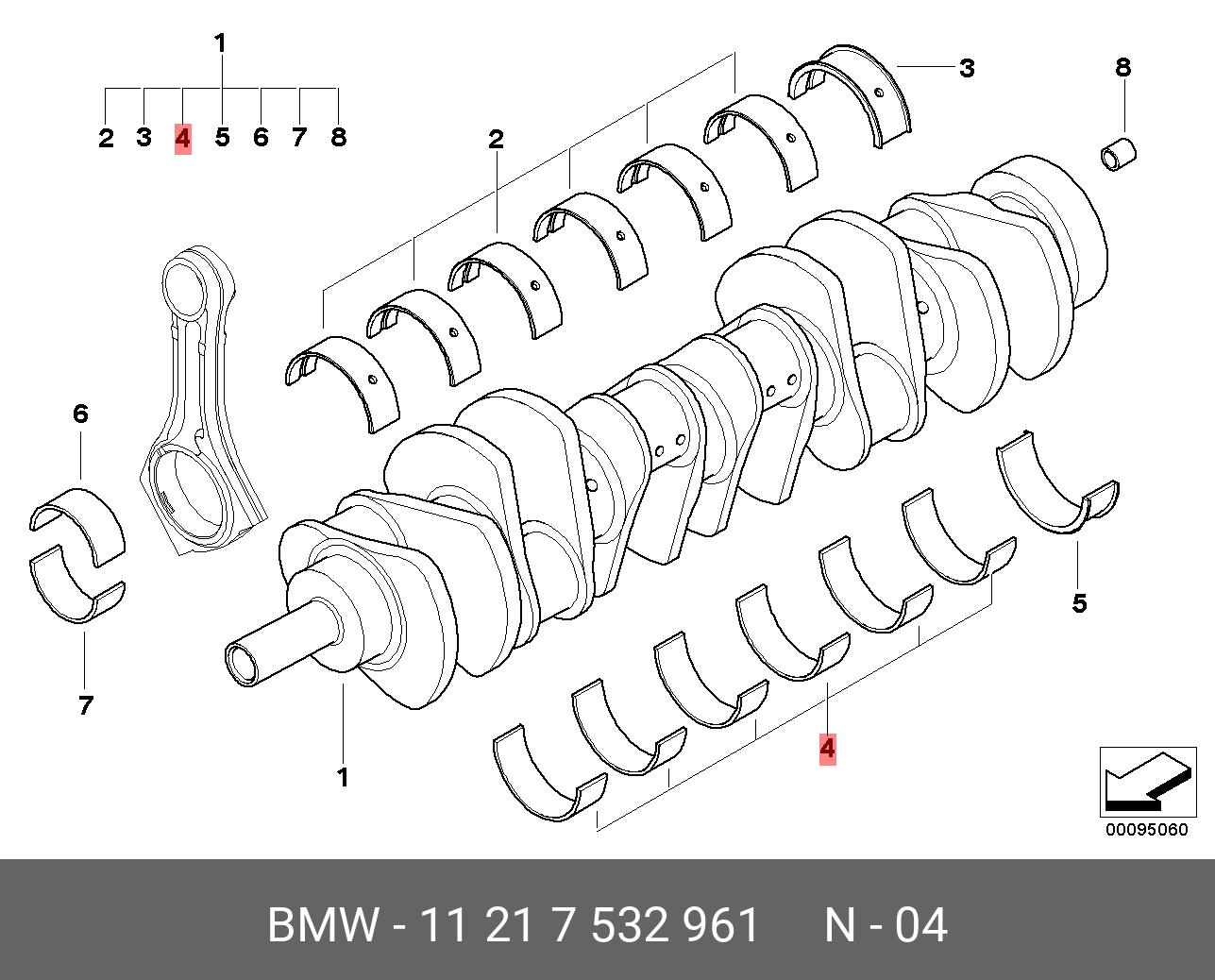 11 21 7 532 961 BMW Вкладыши коренные к-т намотор0508штD70ммBMWN62B44/N62B48E60,E63,E65,E66,E53