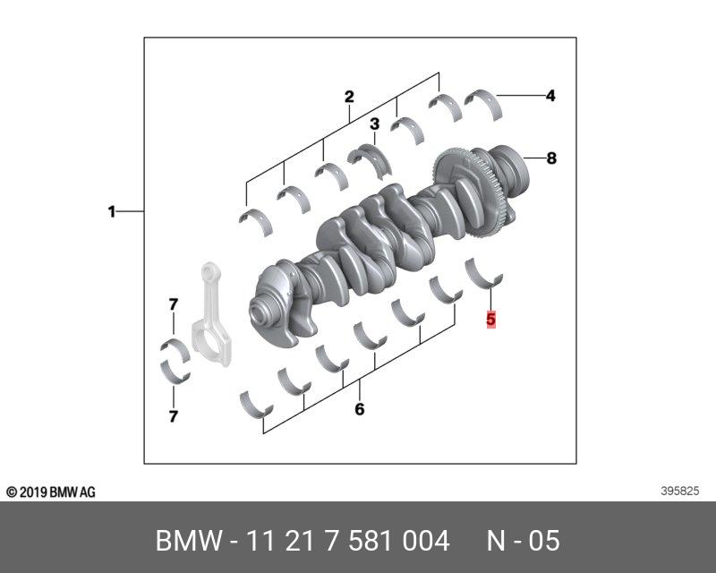 11 21 7 581 004 BMW Вкладыши коренные STDк-т 14вкладышейBMWN52B30