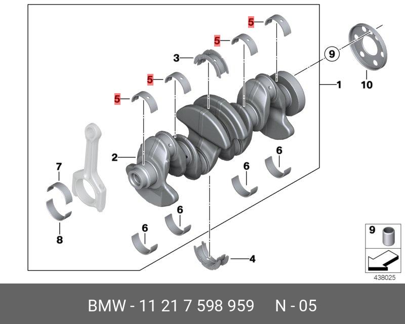 11 21 7 598 959 BMW ВкладышкореннойверхнийSTDN20B20TBMWX1X33205203285282011-