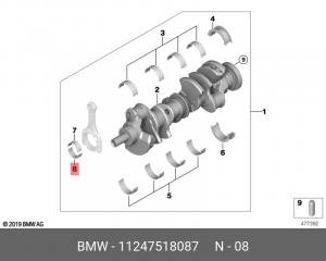 11 24 7 518 087 BMW Вкладыши шатунные к-т на мотор ECB0106050 BMW N62B44A E60,E63,E65,E66,E53 16шт 1