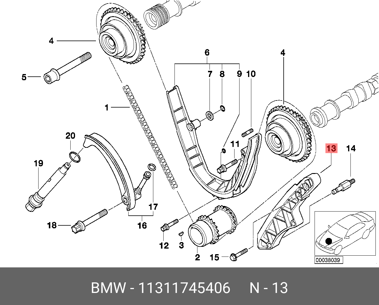 11 31 1 745 406 BMW Комплект ГРМ BMWM624.4L1996-200312позиций