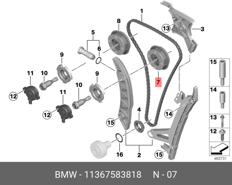 Название Муфта изменения фаз ГРМ ECV0105 впуск. распред. вала N20B20 11367583818 BMW