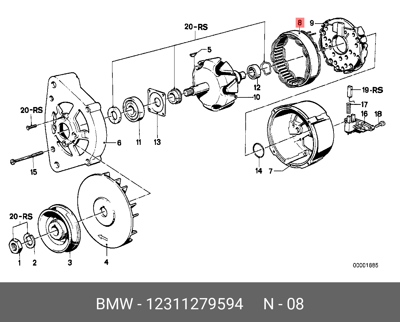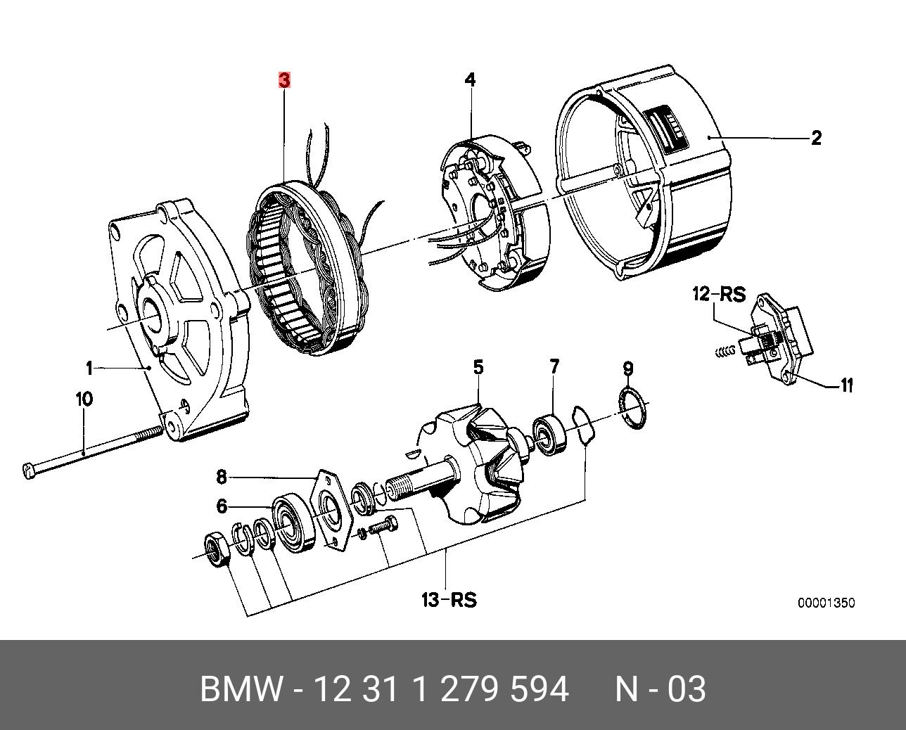 12 31 1 279 594 BMW Статор генератора afb0101ux