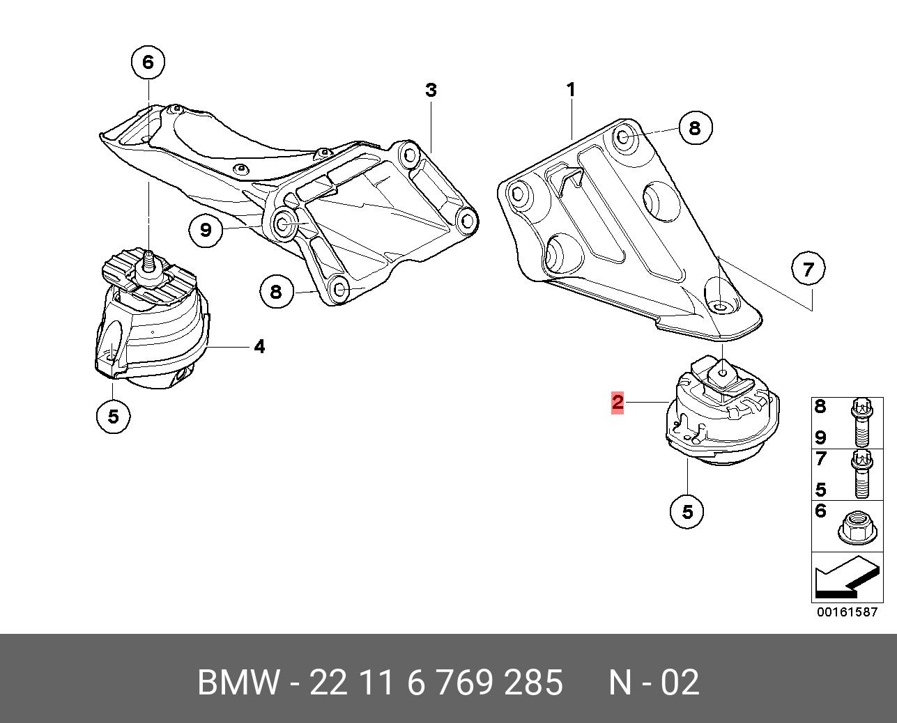 22 11 6 769 285 BMW 22116769285 bmw резиновая подушка левая