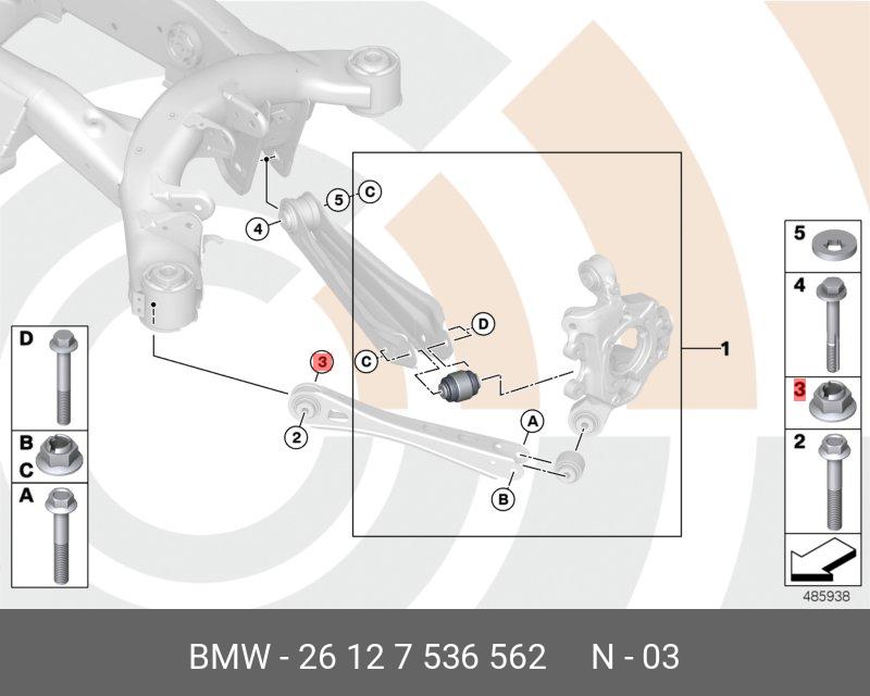 26 12 7 536 562 BMW 26127536562 bmw гайка
