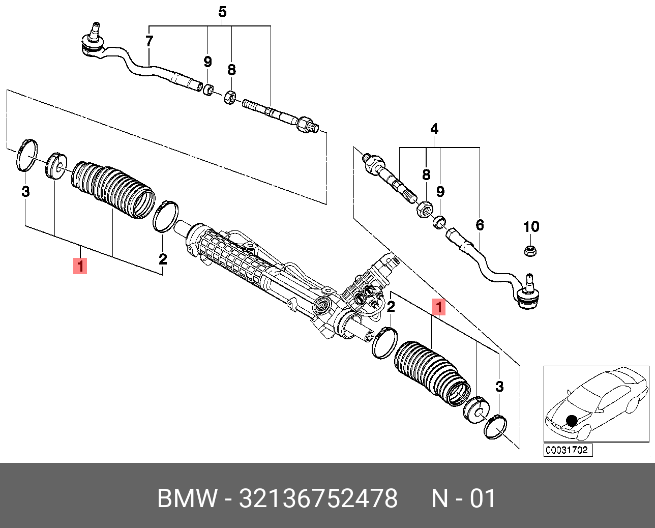32 13 6 752 478 BMW Пыльник рулевой рейки rdz0371mg