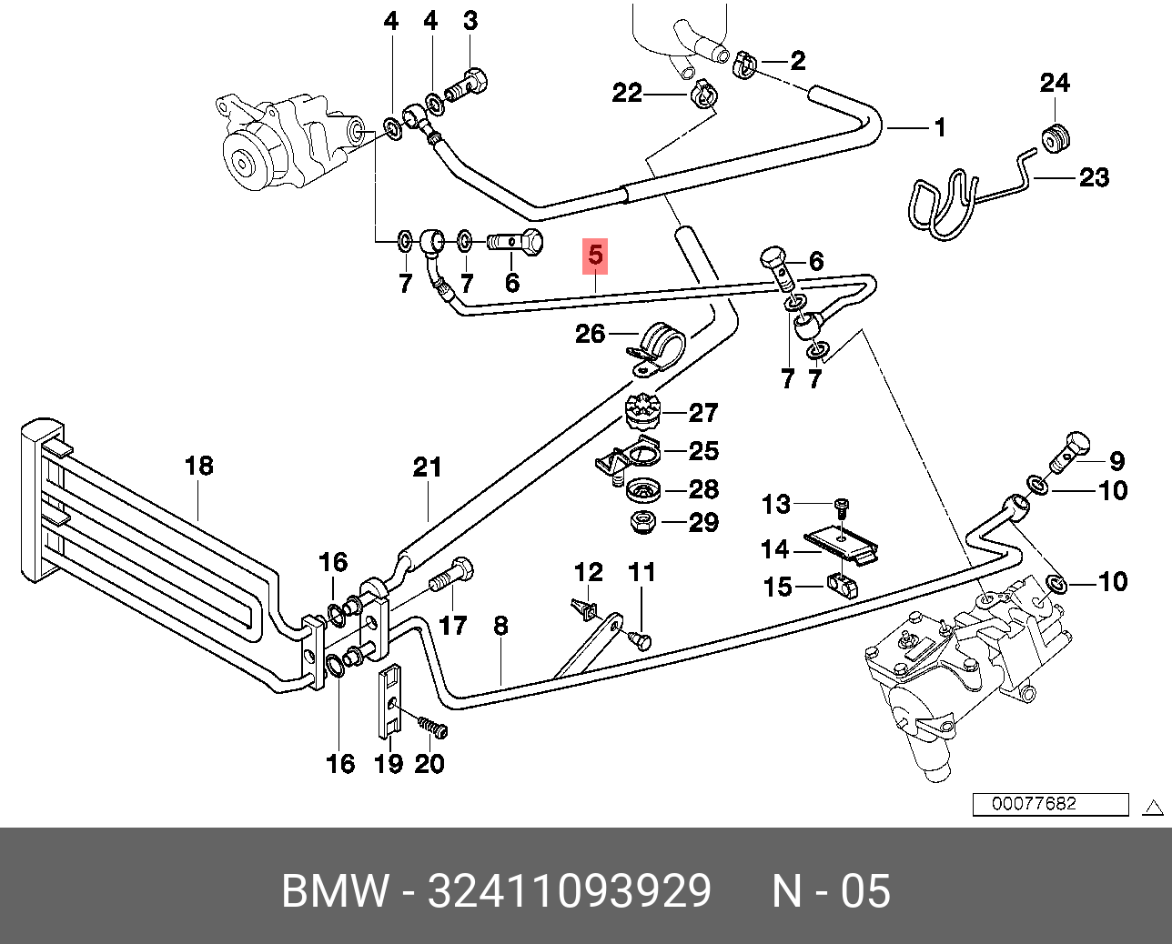 32 41 1 093 929 BMW Напорный шланг от насоса к рейке hph0132