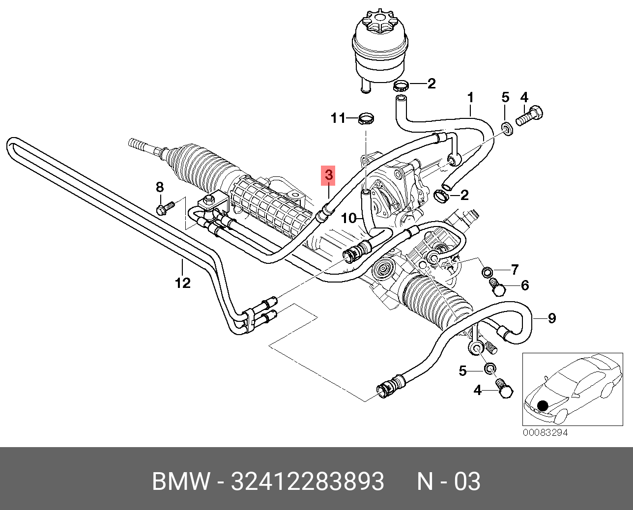 32 41 2 283 893 BMW Напорный шланг от насоса к рейке hph0216