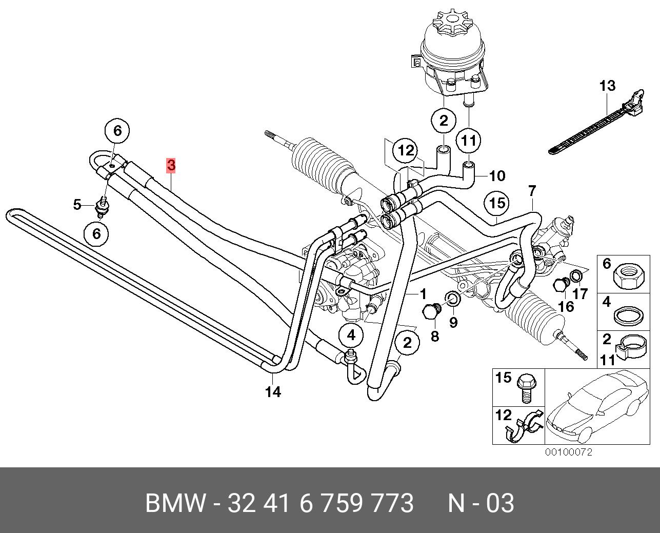 32 41 6 759 773 BMW Напорный шланг от насоса к рейке hph0105