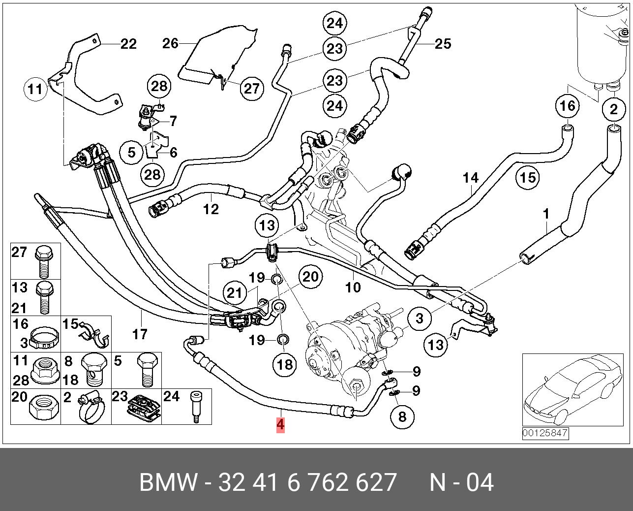 32 41 6 762 627 BMW Напорный шланг от насоса к рейке hph0104