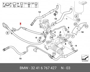 32 41 6767427 BMW Напорный шланг от насоса к рейке hph0089