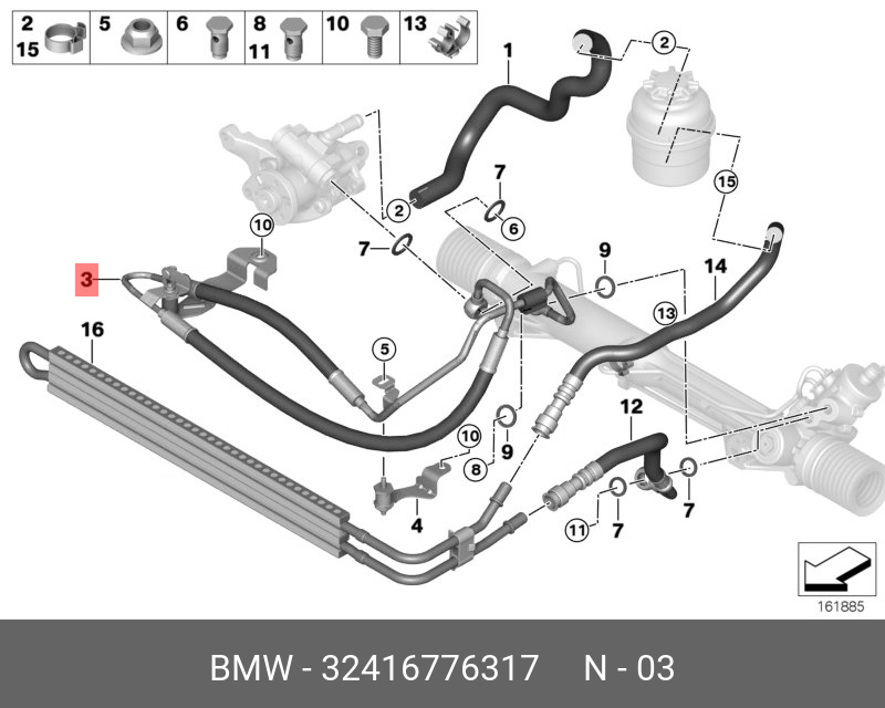 32 41 6 776 317 BMW Напорный шланг от насоса к рейке hph0221