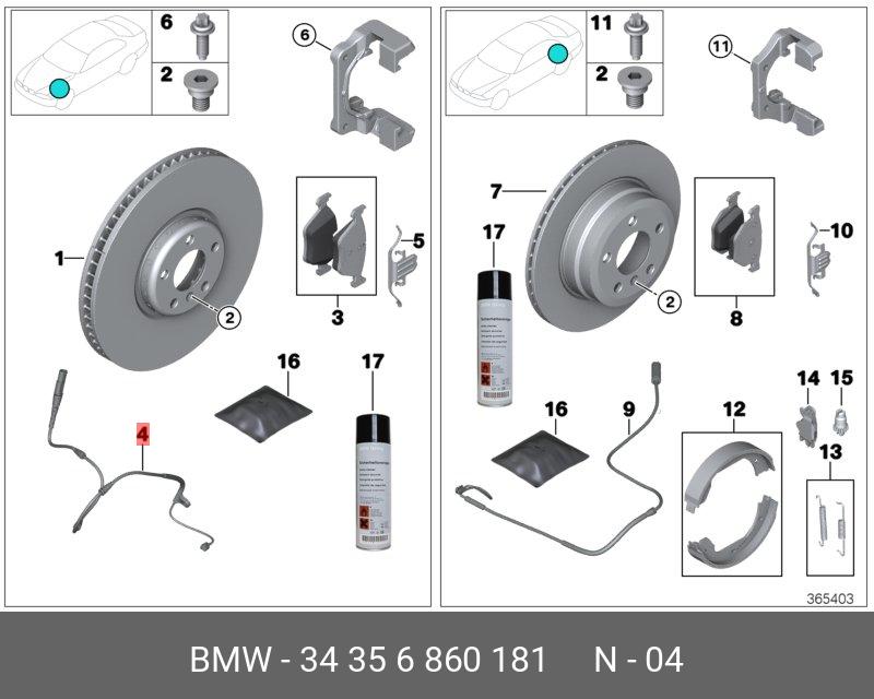 34 35 6 860 181 BMW 34356860181 bmw датчик износа тормозных накладок л пд