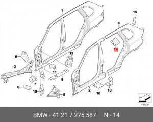 41 21 7 275 587 BMW 41217275587 bmw армирующая пластина задней стойки л