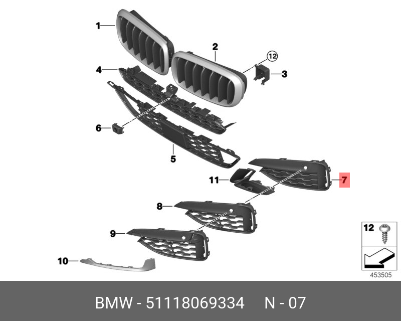 51 11 8 069 334 BMW 51118069334 bmw решетка боковая закрытая п