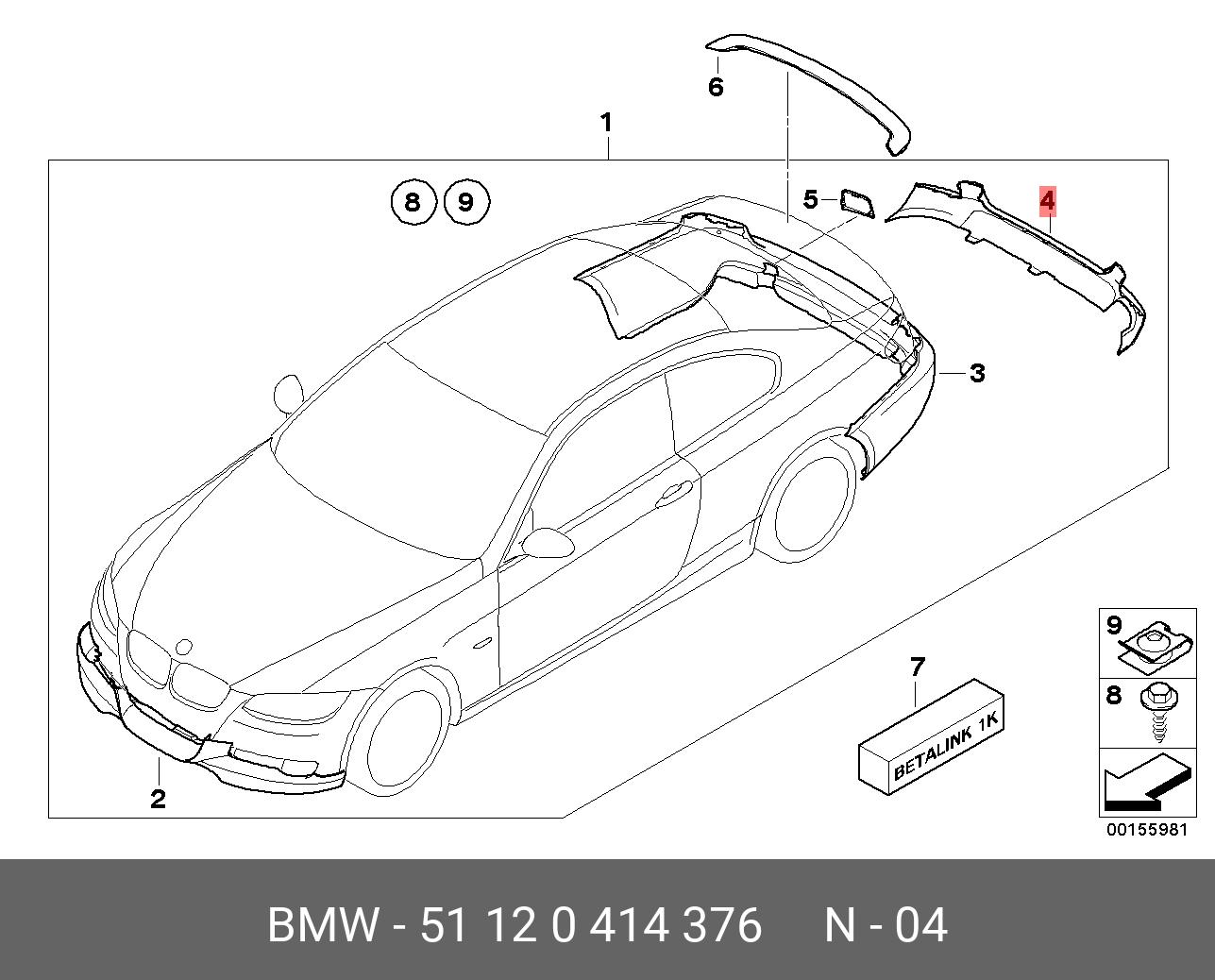 51 12 0 414 376 BMW 51120414376 BMW ВСТАВКА ДЛЯ ЗАДНЕЙ ОБЛИЦО