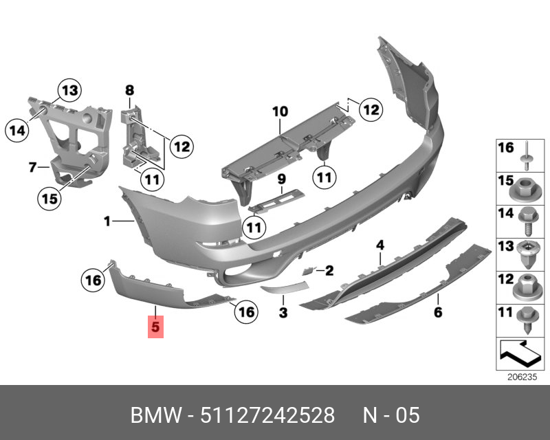 51 12 7 242 528 BMW 51127242528 BMW НАКЛАДКА БАМПЕРА П ЗД ТЕКСТУРА