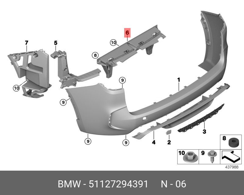 | Название | 51127294391 bmw среднее крепление заднего бампера |