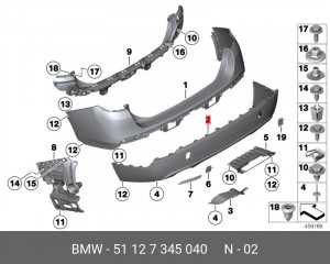 51 12 7 345 040 BMW 51127345040 BMW ОБЛИЦОВКА БАМПЕРА ЗД НЖ ТЕКСТУРА