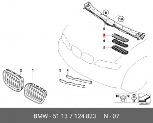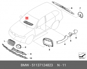 51 13 7 124 823 BMW Решетка капота Л Титан Х5 E53