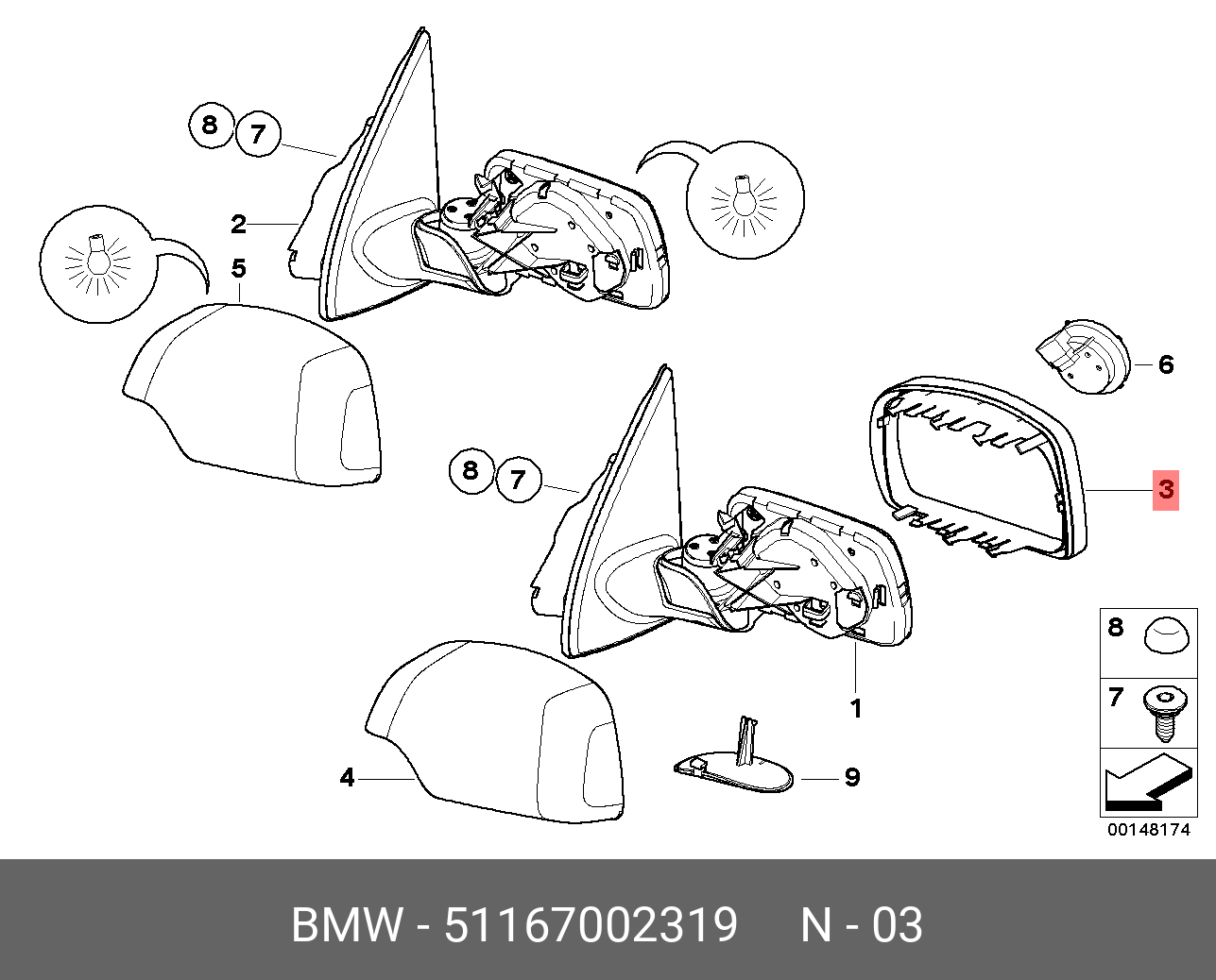 51 16 7 002 319 BMW 51167002319 BMW РАМКА ЗЕРКАЛА ЛЕВАЯ