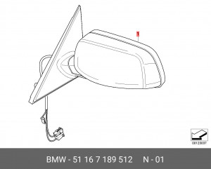 51 16 7 189 512 BMW 51167189512 bmw наружное зеркало с обогревом без стекл.п