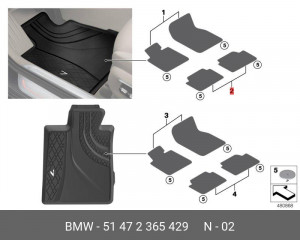 51 47 2 365 429 BMW 51472365429 bmw компл. ковриков black, зд, g12