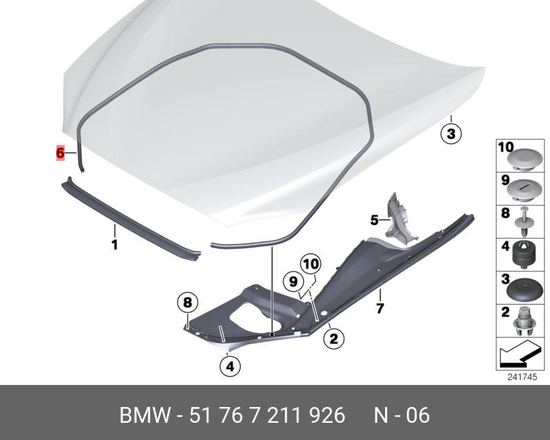 51 76 7 211 926 BMW 51767211926 BMW УПЛОТНИТЕЛЬ КАПОТА БОК
