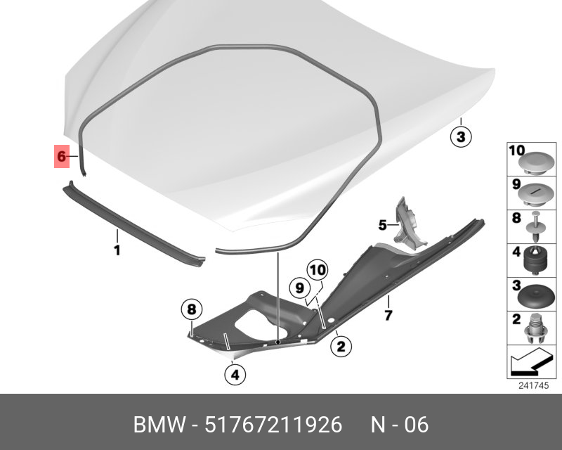 Название 51767211926 BMW УПЛОТНИТЕЛЬ КАПОТА БОК