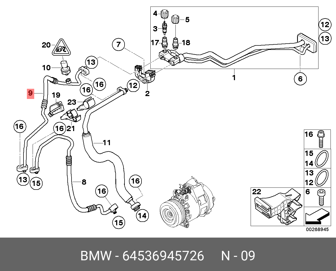 64 53 6 945 726 BMW Трубка кондиционера hac0059