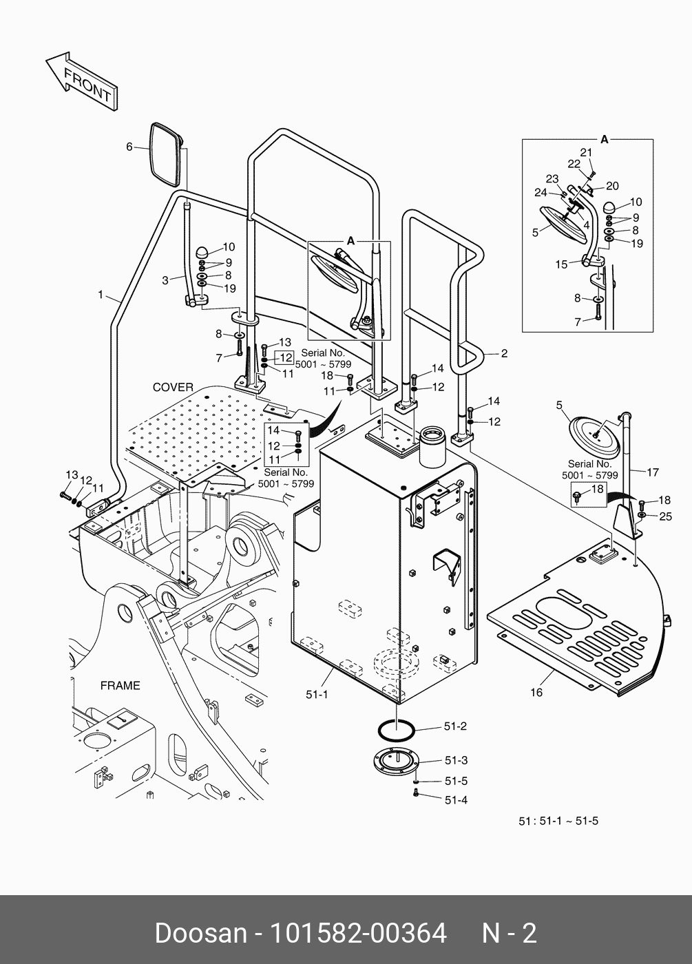 101582-00364 DOOSAN Rail,guard;(r.h)
