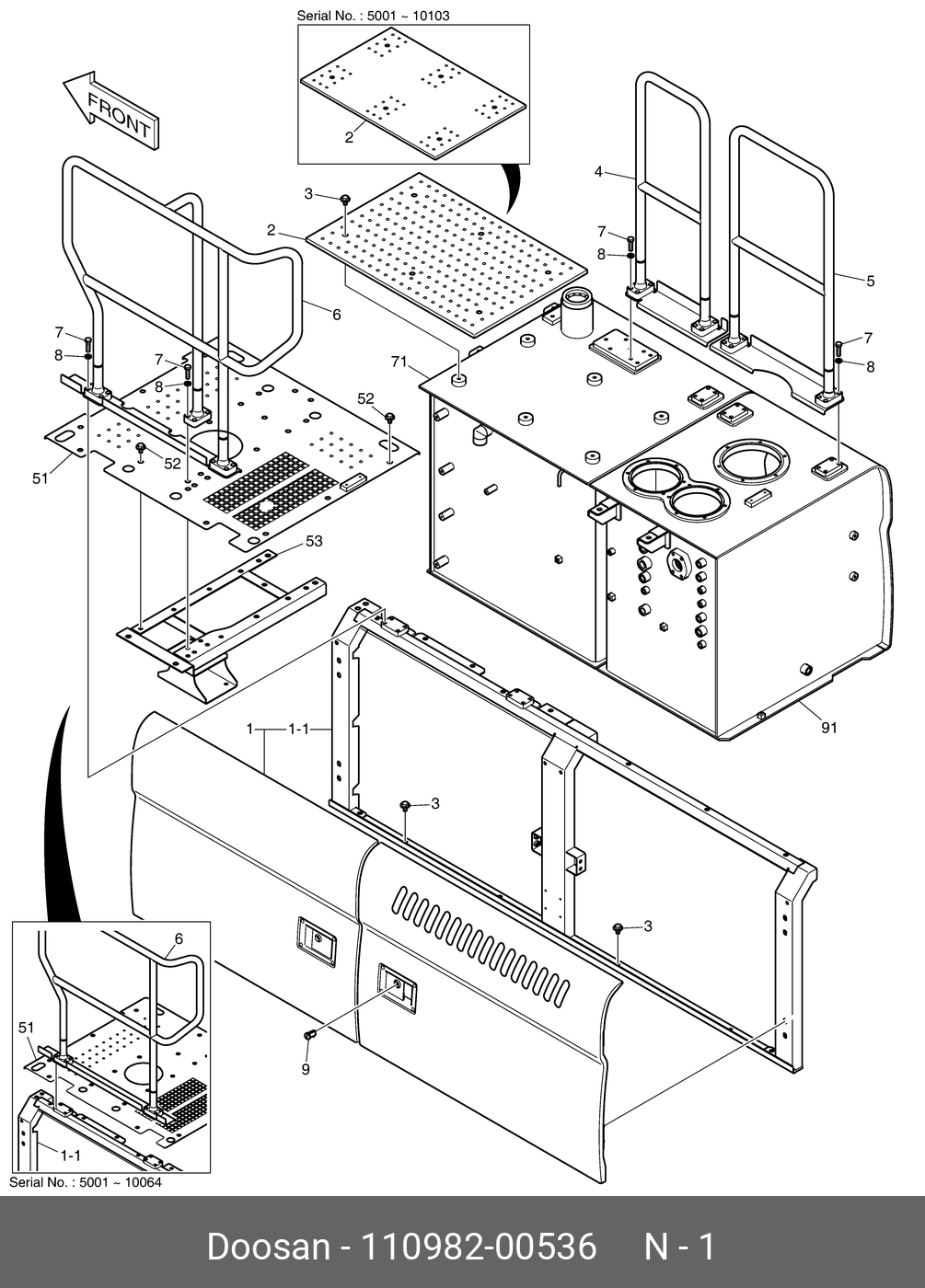 110982-00536 DOOSAN Door assy,side;(with guardrail)