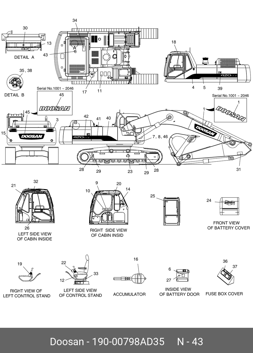 190-00798AD35 DOOSAN Plate,name;solar 420lc-v