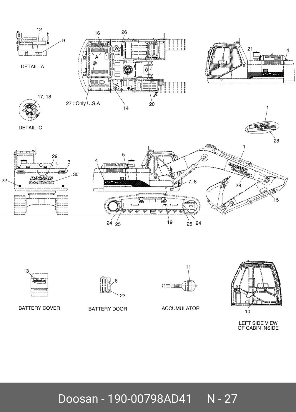190-00798AD41 DOOSAN Plate,name;solar 225ll