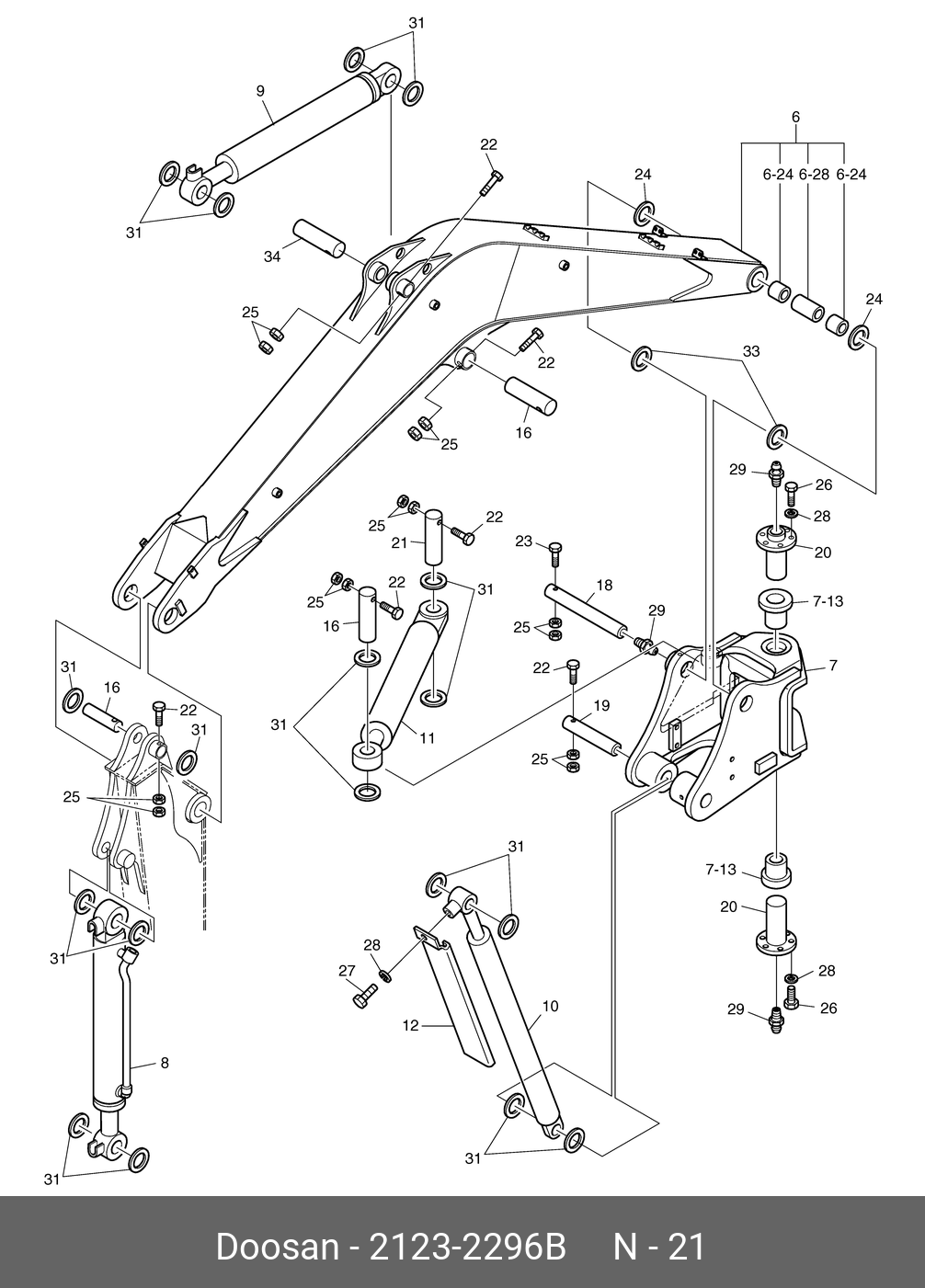 2123-2296B DOOSAN Pin;swing cylinder head
