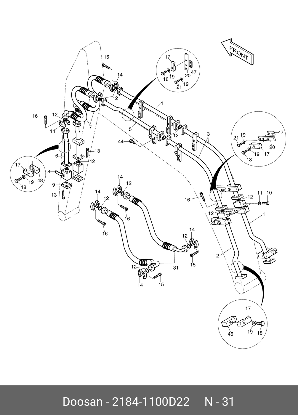 2184-1100D22 DOOSAN Шланг РВД (рукав)