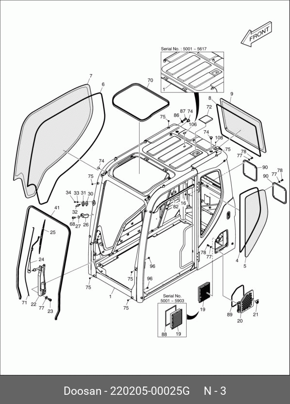 220205-00025G DOOSAN Окно лобовое в сборе