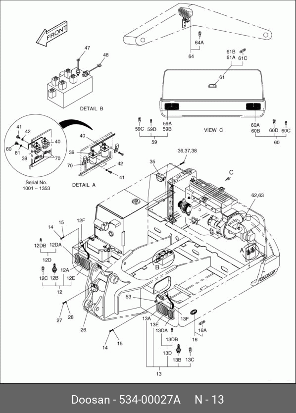 534-00027A DOOSAN Lamp assy,combination;left