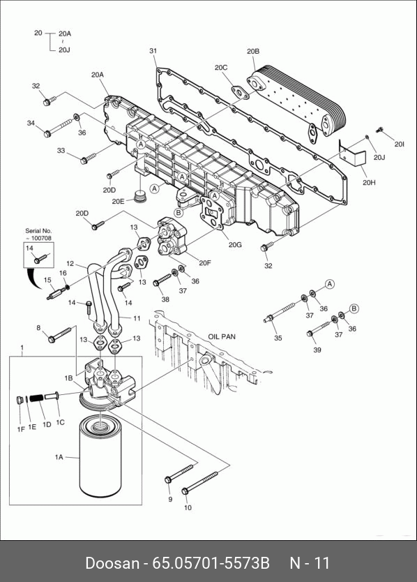 65.05701-5573B DOOSAN Pipe,suction;for t/c to cyl,block