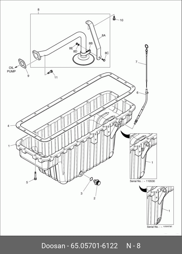 65.05701-6122 DOOSAN Pipe,oil;for turbo charger oil delivery