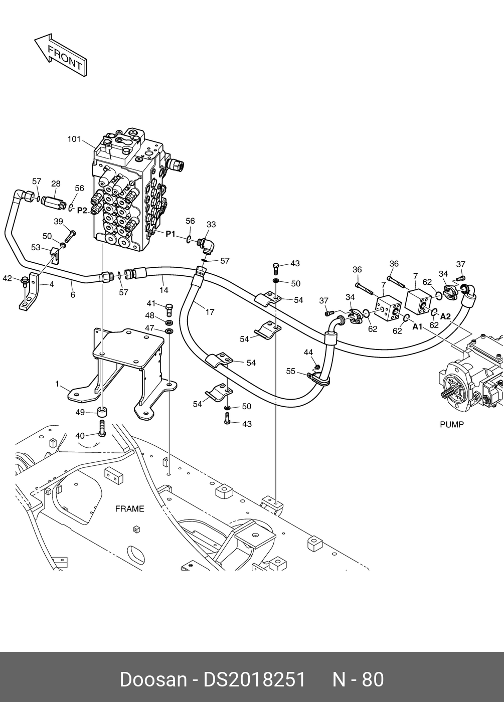 DS2018251 DOOSAN Hose assy,hydraulic;orfs flange
