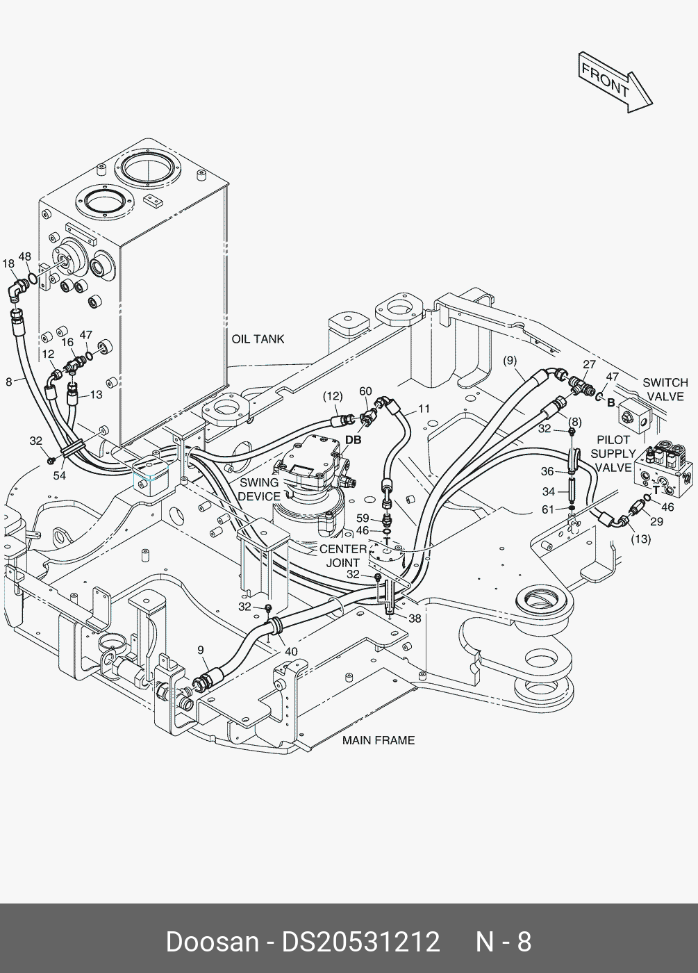 DS20531212 DOOSAN Hose,hydraulic;(st-st)pf1/2",2570l,105p