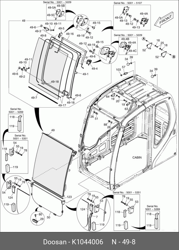 K1044006 DOOSAN Стекло лобовое верхнее K1044006