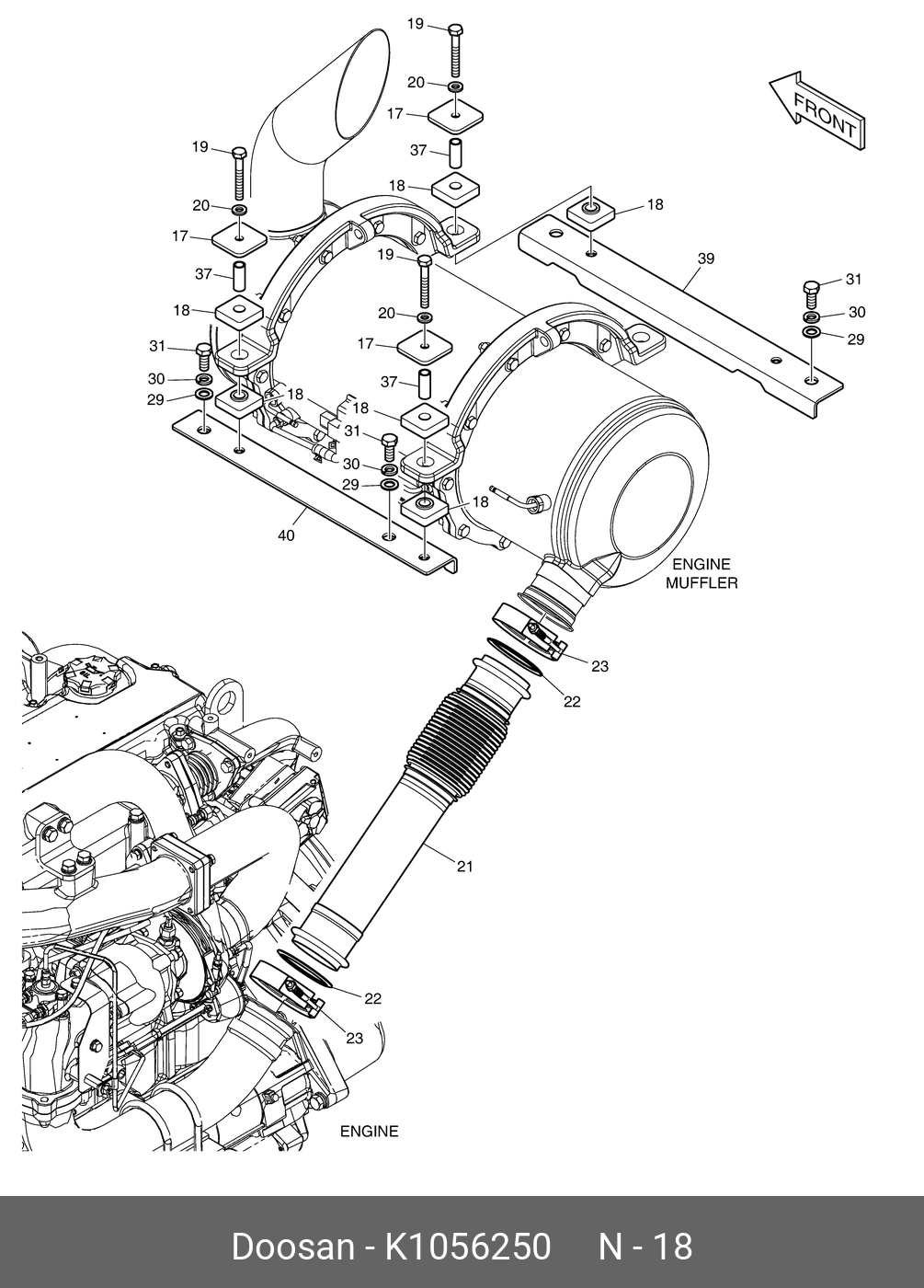 K1056250 DOOSAN Rubber,mounting;muffler