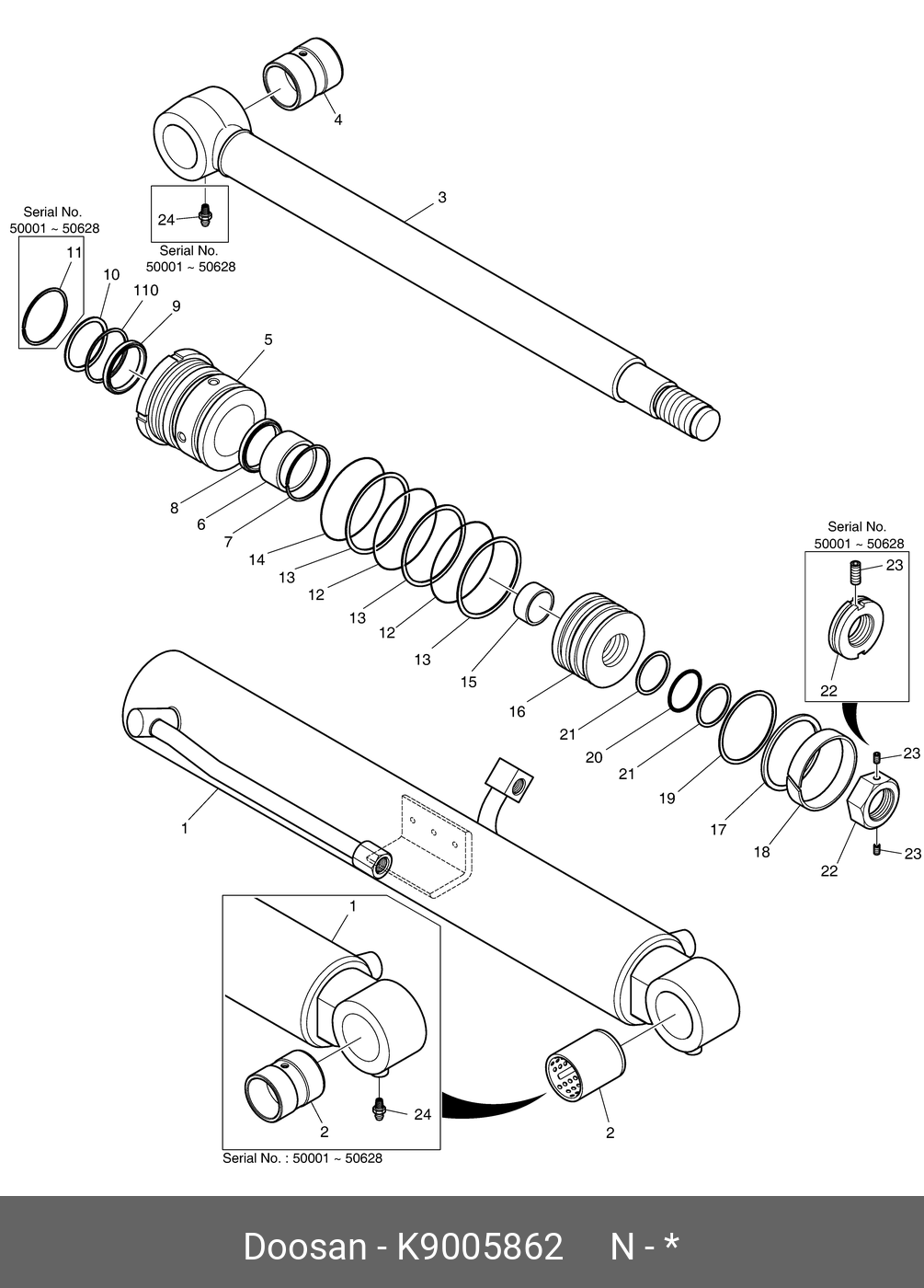 K9005862 DOOSAN Ремкомплект гидроцилиндра стрелы K9005862
