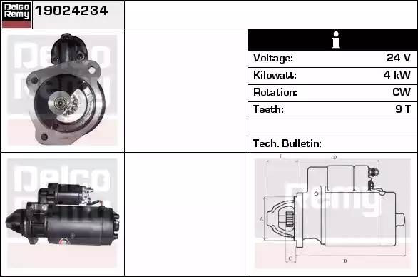 19024234 DELCO REMY Стартер 24v, 4.0kw, 9-зуб, ims101770