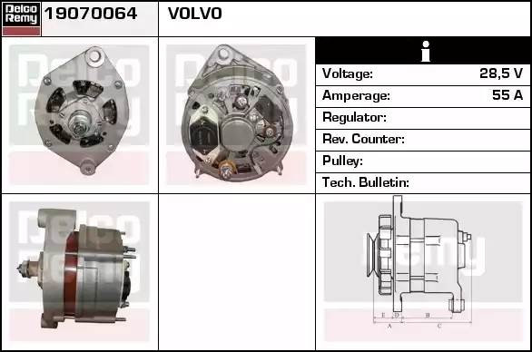19070064 DELCO REMY Генератор cо шкивом 1 ручей alb9518lp